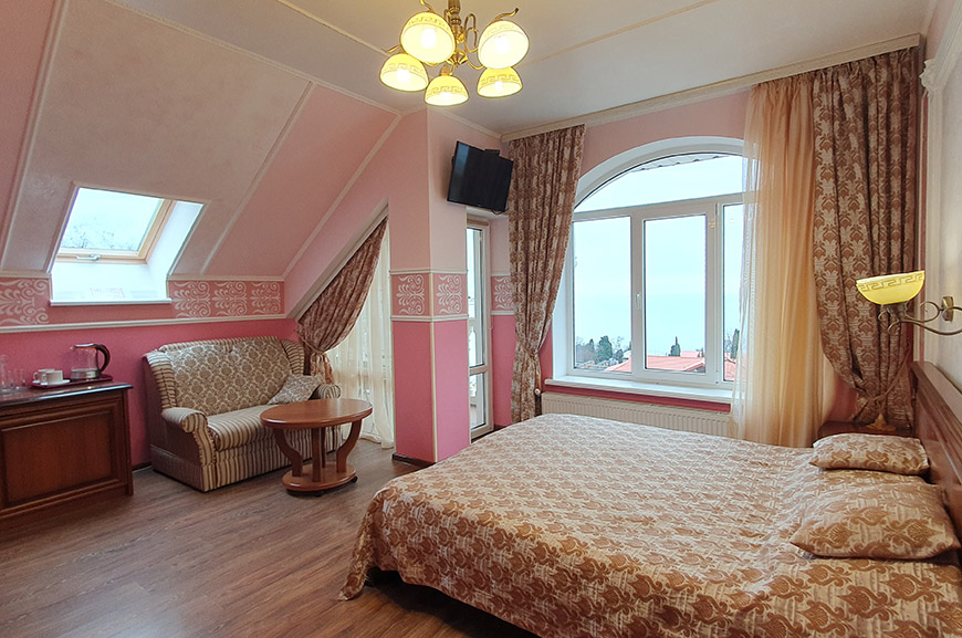 | КОМНАТА "ТУРЦИЯ" С ВИДОМ В СТОРОНУ МОРЯ (2 ЭТАЖ) | |